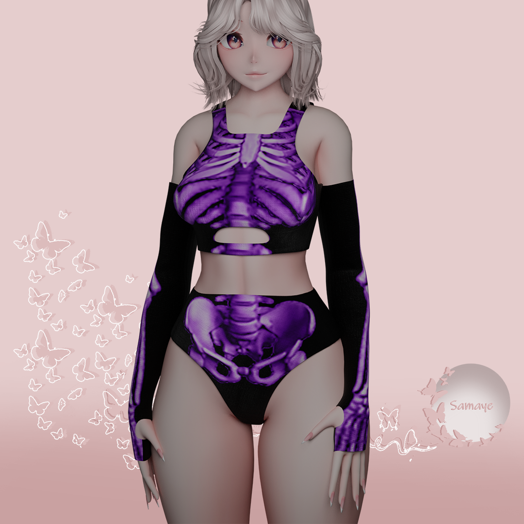 Skeleton Rave Bodysuit Outfit for dancers. Comes with 10 Color Options, and a Matcap and Emission Mask.