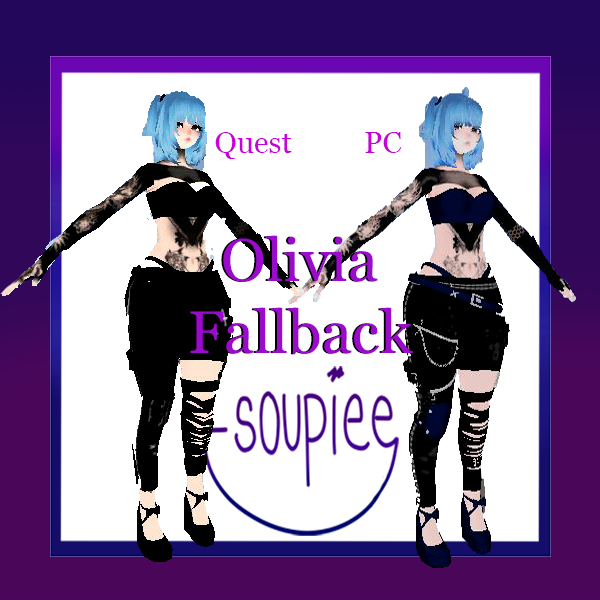 Stop being a toothbrush, a banana, or an alien. Olivia is a custom fallback avatar that works with a simplified quest version and an improved pc version. If you constantly use a very poor avatar, most people will by default hide your avatar for performance. Or if you use a pc only avatar, quest users will see your default fallback avatar. Now you can still look like a cute anime girl to those around you.