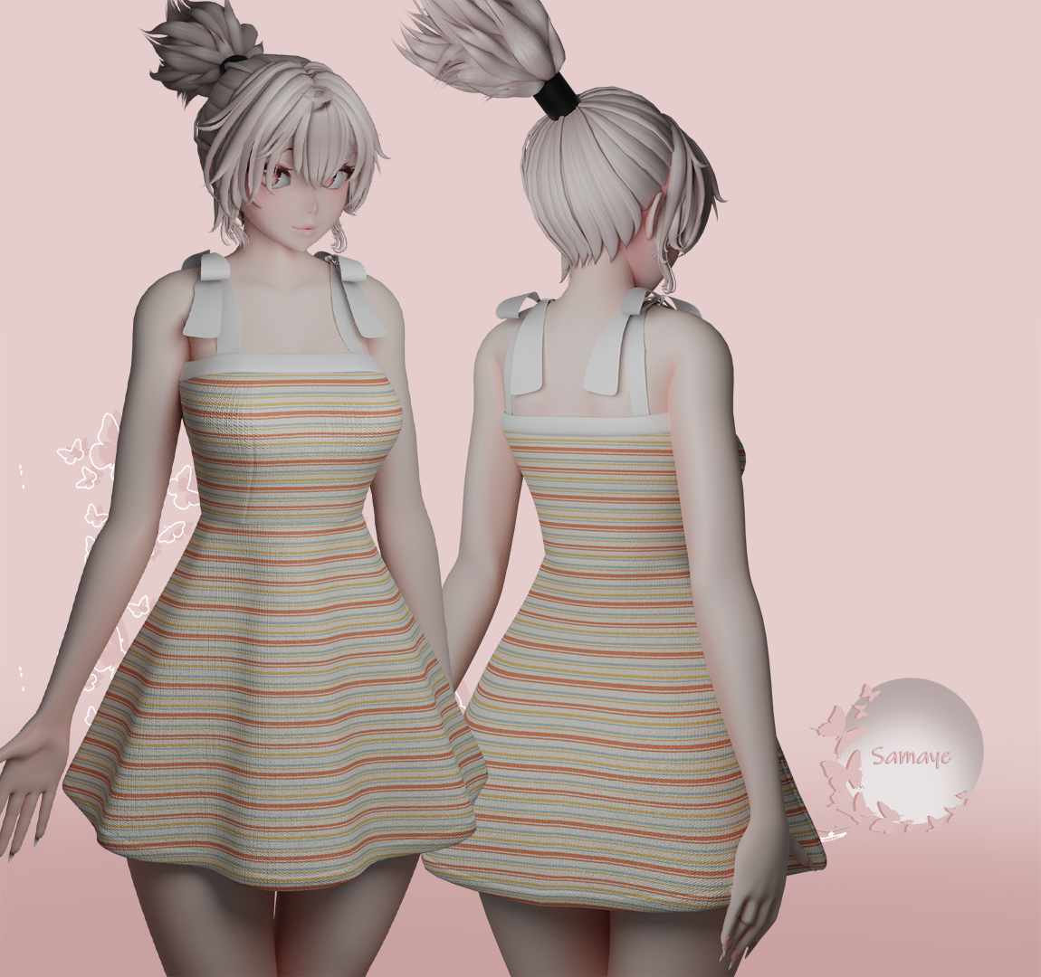 Dress and ribbons are rigged.