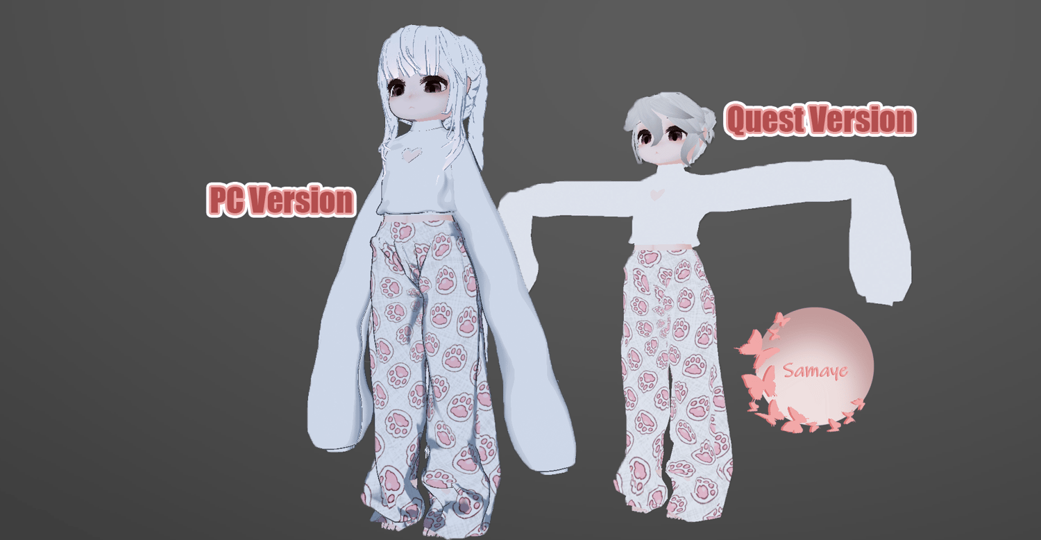 Stop being a toothbrush, a banana, or an alien. Eri is a custom fallback avatar that works with a simplified quest version and an improved pc version. If you constantly use a very poor avatar, most people will by default hide your avatar for performance. Or if you use a pc only avatar, quest users will see your default fallback avatar. Now you can still look like a cute chibi to those around you.